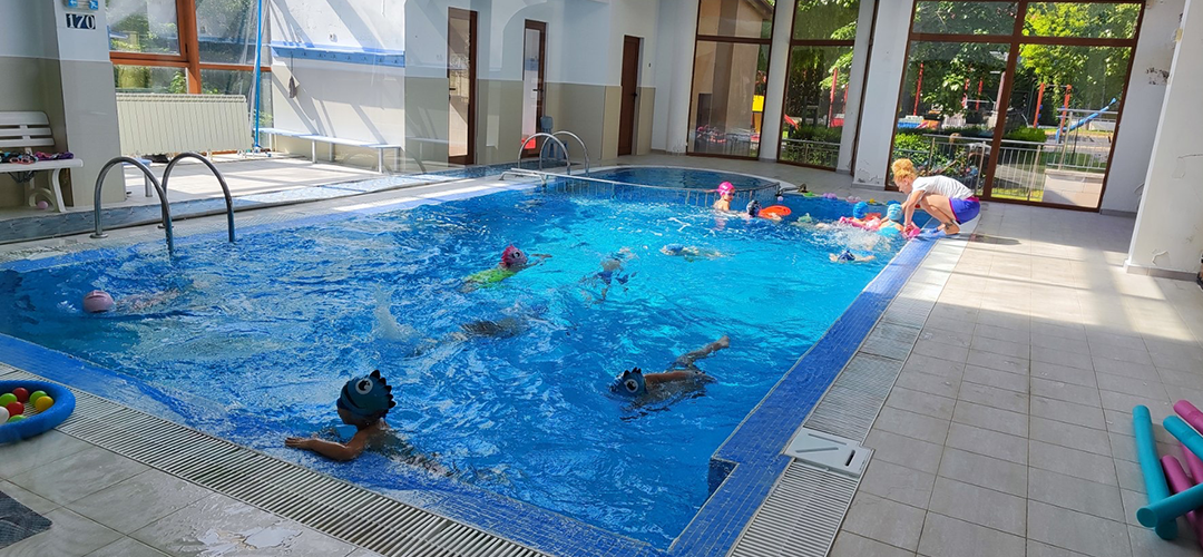 Да, правилно прочетохте. „Германи“ разполага със собствен закрит басейн, пречистван не с хлор, а с морска сол. Това е не само по-здравословно, но и изключително приятно за децата, които посещават уроци по плуване с професионален инструктор два пъти седмично – включено в месечната такса. Водата пречиства, калява и учи на самоконтрол – и всичко това става в сигурна, уютна и приветлива среда.